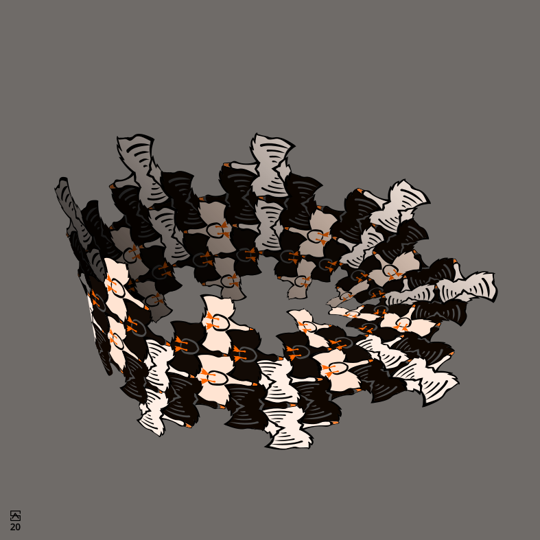 I am a mathematical artist. My graphic artwork features tessellations, optical illusions, and impossible objects. I am interested in exploring the potential of mathematical art to express thoughts visually. I have been experimenting with different ways to intertwine the mathematical content of my graphic art with its pictorial composition. My main inspiration comes from classical western music, which is composed using sophisticated mathematical rules. Yet, it is capable of invoking pure emotions. Visually I am inspired mainly by the work of MC Escher but also by the work of Hans Hinterreiter, Oscar Reutersvärd, Josef Albers, and numerous Islamic artists.